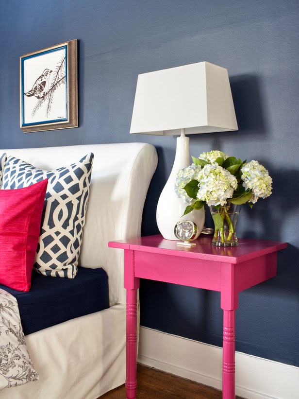 Repurposed Beauty : You wouldn't know this was an old table at first glance, but Designer Brian Patrick Flynn cut it in half and updated with the a hot pink hue.